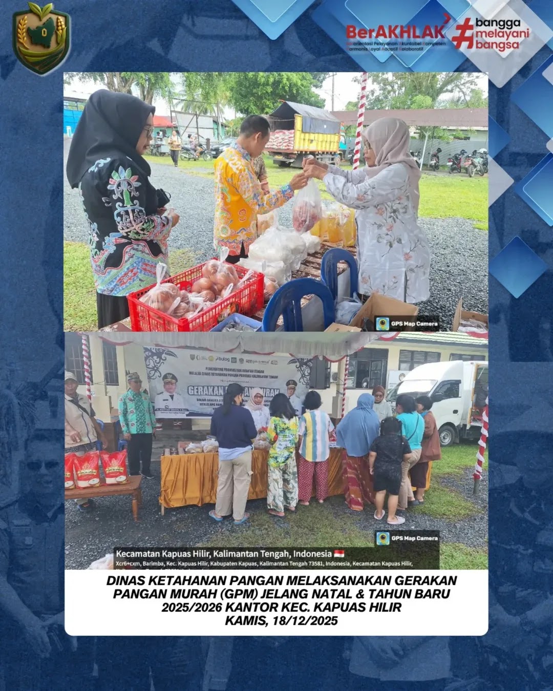 Dinas Ketahanan Pangan Prov. Kalteng melaksanakan Gerakan Pangan Murah (GPM) jelan Natal dan Tahun Baru di Kantor Kecamatan Kapuas Hilir