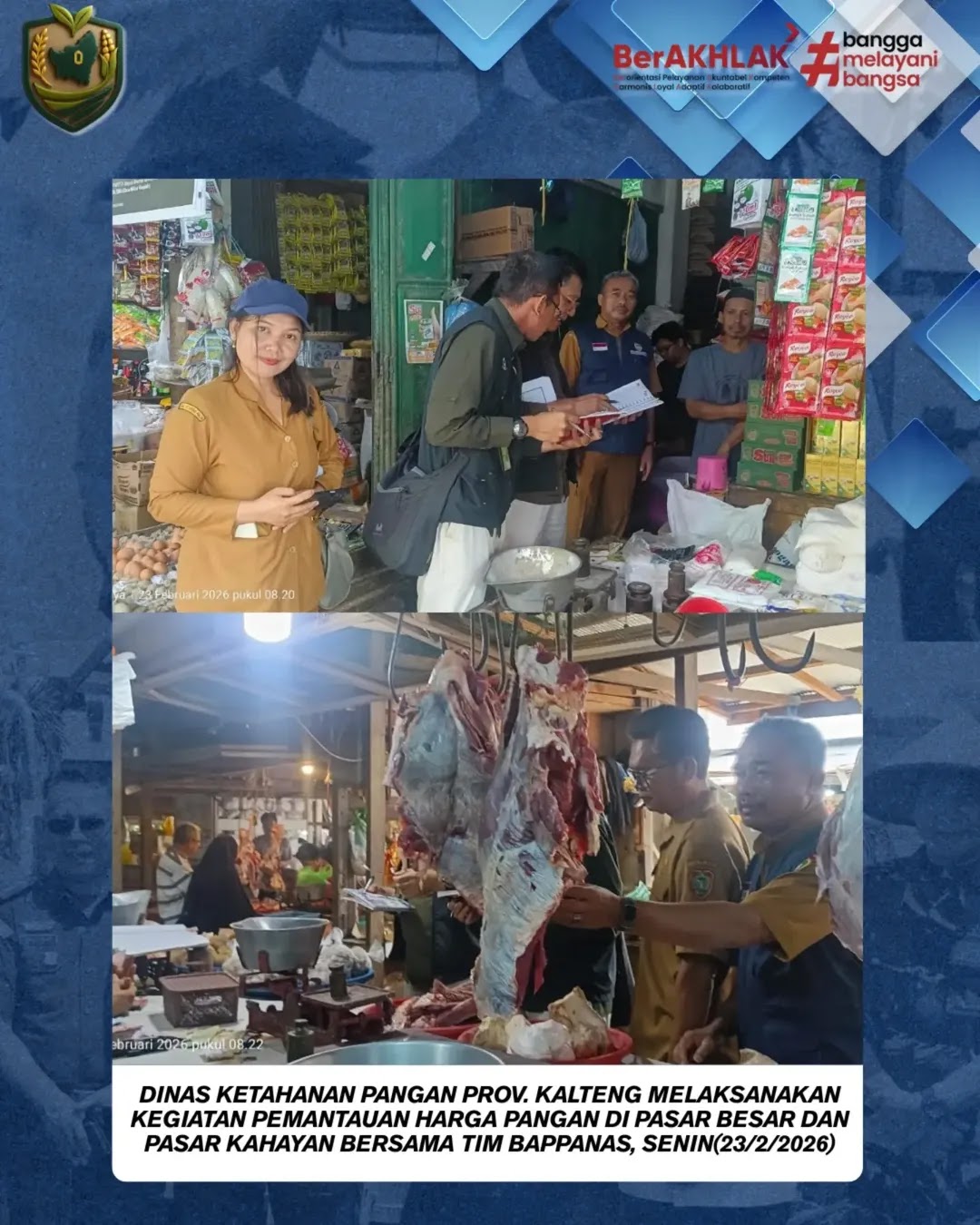 Dinas Ketahanan Pangan Prov. Kalteng Melaksanakan Kegiatan Pemantauan Harga Pangan di Pasar Besar dan Pasar Kahayan Bersama Tim Bappanas, Senin(23/2/2026).